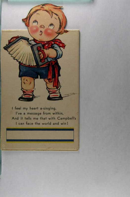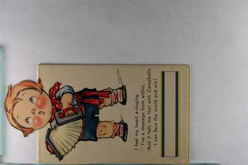 Lot #51. View Larger | Rotate Adv. Campbell’s Soup, Art. by Drayton, Bridge Tally w/ Non P.C. back m cor thin Near VF