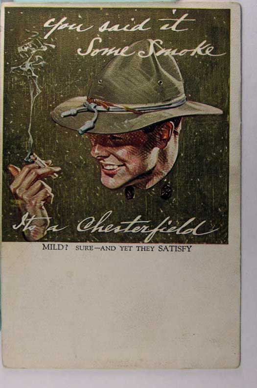 Lot #18. View Larger | Rotate Adv. Chesterfield Cigarettes, “Some Smoke” DB m wear F-VF