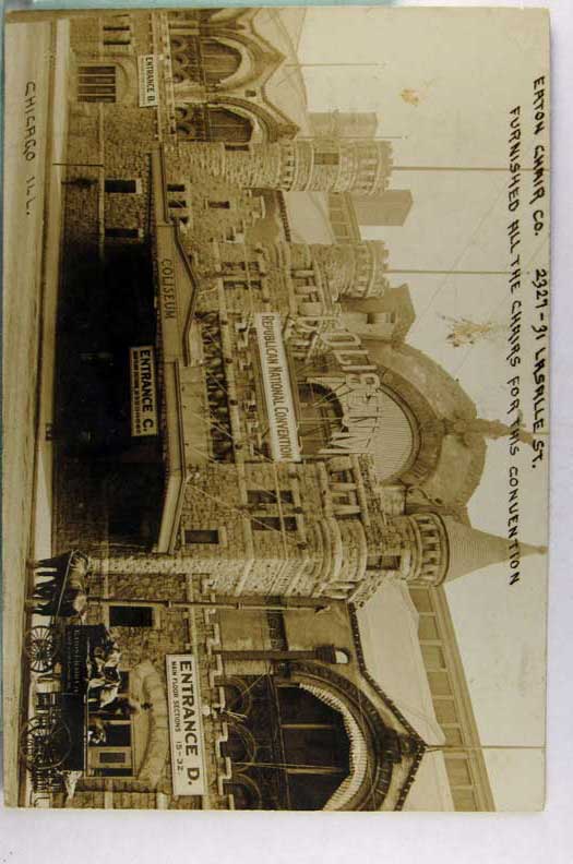 Lot #65. View Larger | Rotate Adv. Eaton Chair Co., Real Photo, w/ 1908 Republican Convention, Chicago, IL m sts Near VF