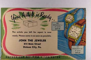 Lot #39. View Larger | Rotate Adv. Bulova Watches, Multicolor on U.C. Gov’t Postal VF