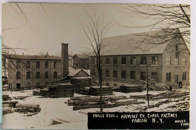 Lot #66. View Larger | Rotate Adv. Knaus Bros & Arwine Co. Chair Factory, Parish, New York, Real Photo, Dated 1909 m cor wear Near VF