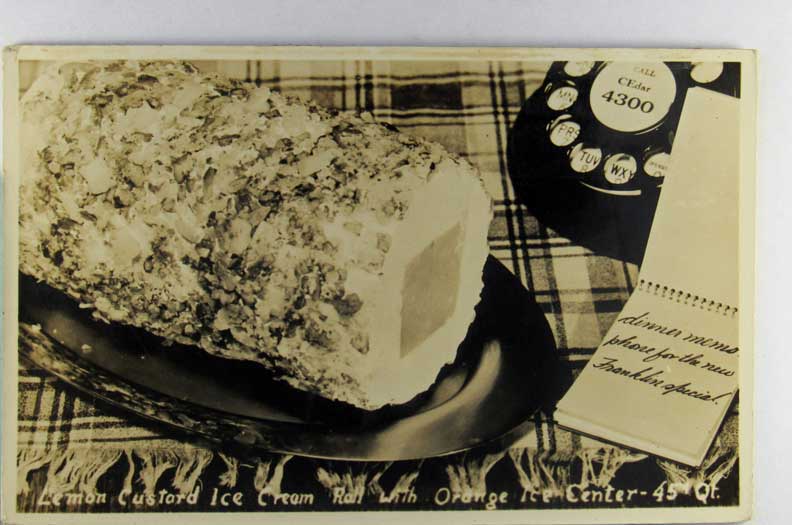 Lot #44. View Larger | Rotate Adv. Franklin Ice Cream & Candy, Real Photo, “Ice Cream Roll”, Used 1936 Near VF