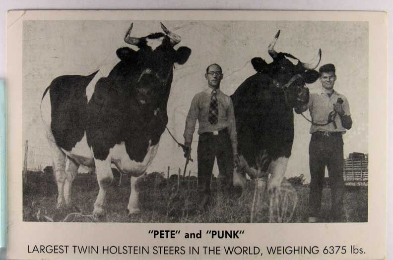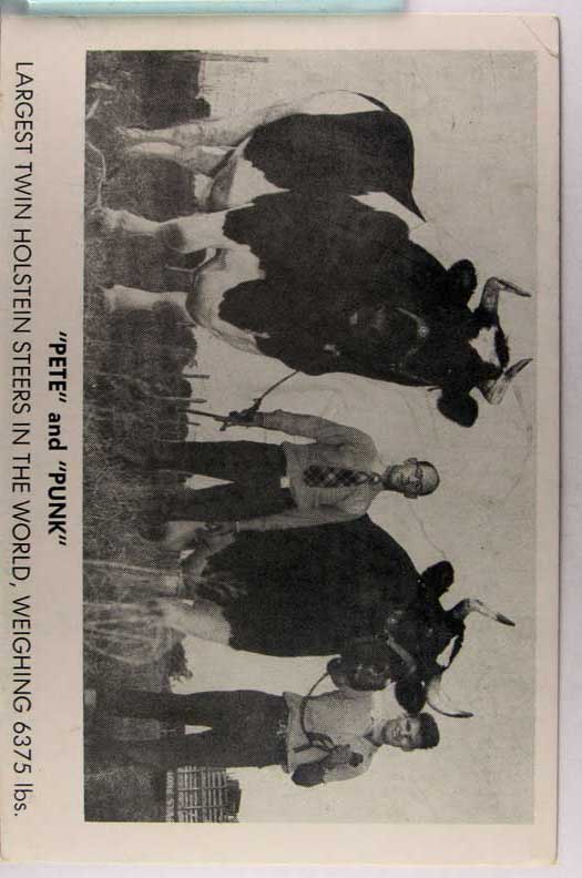 Lot #88. View Larger | Rotate Twin Holstein Steers, Pete & Punk”, The Largest in the World”, Real Photo m cor cr VF