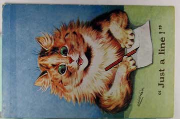 Lot #256. View Larger | Rotate Art. Sig. Louis Wain, Salmon Pub., “Just a Line!”, w/ Fantasy Cat, Used DB m cor wear & crs F-VF
