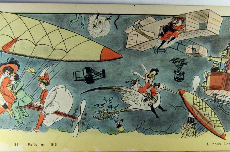 Lot #242. View Larger | Rotate Art. Sig. Xavier Sager, Unfolded Double Card w/ Two P.C. backs, “Paris in 1915” DB VF