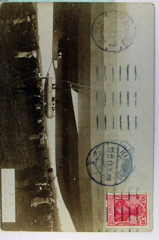 Lot #1330. View Larger | Rotate Airship, German “LZ3”, Real Photo, Used Hamburg stamp & cof F