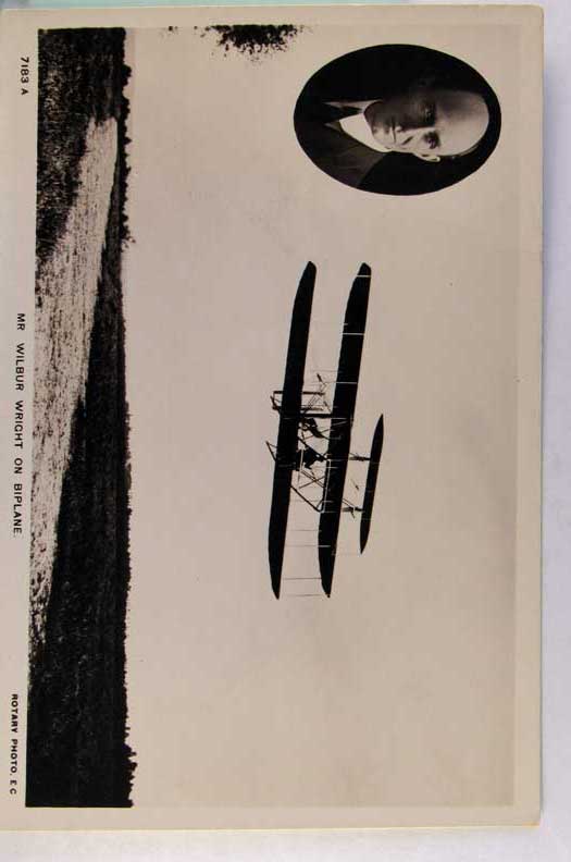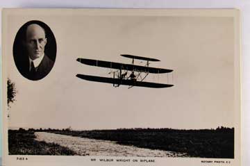 Lot #1361. View Larger | Rotate Early Aviation w/ Wilbur Wright on Biplane, British Real Photo, #7183A m edge cr VF