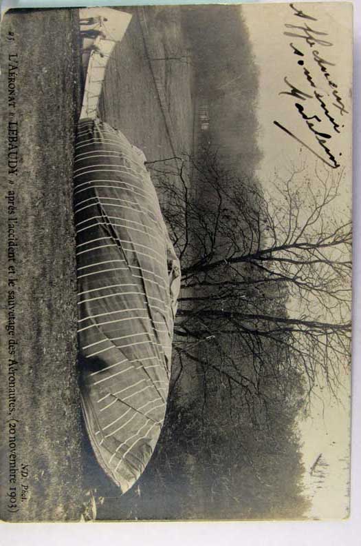 Lot #1332. View Larger | Rotate Balloon Crash, French Real Photo, Dated 1903 DB m wof & m cor wear F-VF