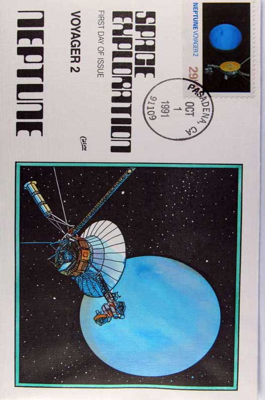 Lot #1380. View Larger | Rotate Hand-Painted First Day Cover by Collins, Space Exploration, “Voyager 2 Neptune”, 1991 VF