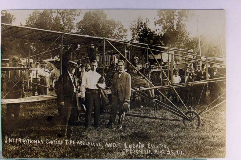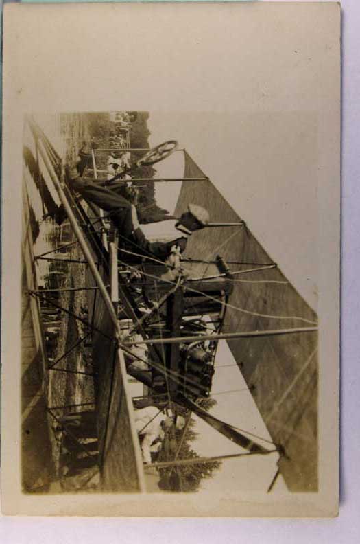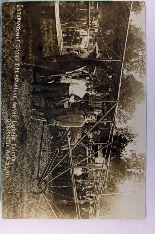 Lot #1347. View Larger | Rotate Aviator Andie Ludvik w/ Curtiss Type Airplane, Real Photo w/ Kruxo P.C. back m spots Near VF
