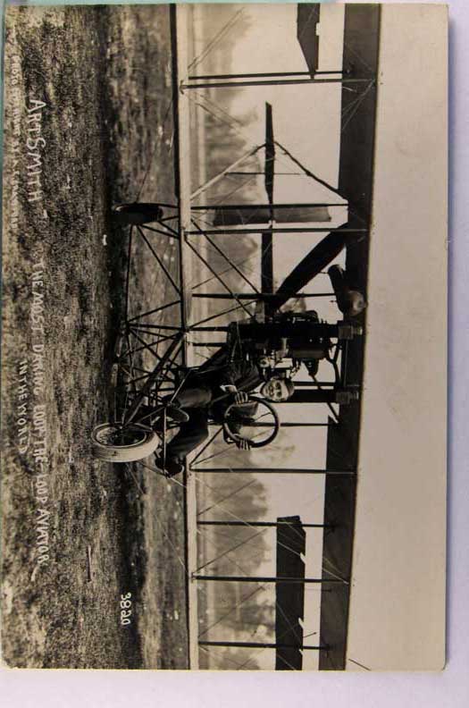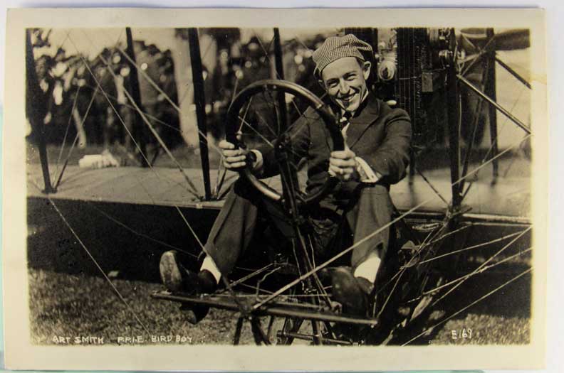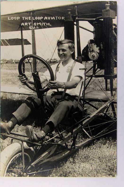 Lot #1341. View Larger | Rotate Aviator Art Smith, Real Photo w/ AZO P.C. back, “Loop the Loop Aviator” VF