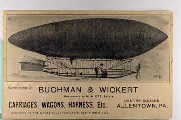 Lot #1334. View Larger | Rotate Airship Adv. Buchman & Wickert Carriages, Etc., Allentown, Pennsylvania DB major cr F