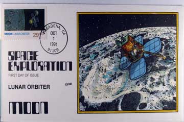 Lot #1382. View Larger | Rotate Hand-Painted First Day Cover by Collins, “Lunar Orbiter”, 1991 VF