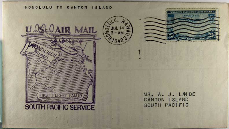 Lot #1345. View Larger | Rotate Cover, Pacific Clipper First Flight Cover, July 14, 1940, Honolulu to Canton Island VF