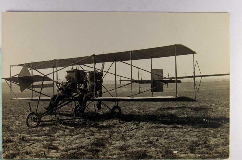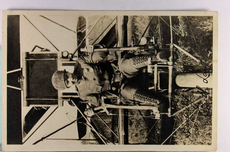 Lot #1194. View Larger | Rotate Early Bi-Plane, “Aveator Miller”, Real Photo w/ AZO P.C. back, Dated 1911 VF