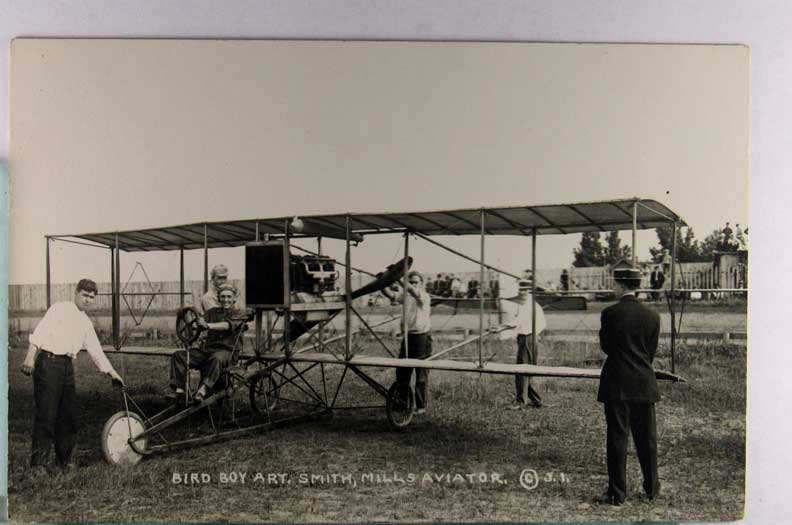 Lot #1196. View Larger | Rotate Early Bi-Plane, “Bird Boy Art Smith”, Real Photo w/ AZO P.C. back VF