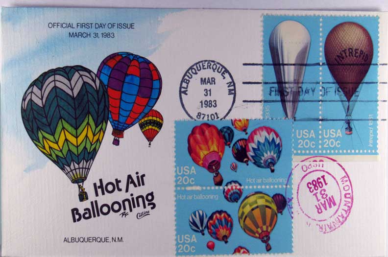 Lot #1318. View Larger | Rotate Hand-Painted First Day Cover by Collins, Hot Air Ballooning, 1983 VF
