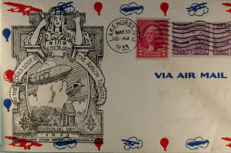 Lot #1336. View Larger | Rotate Airship Akron Memorial Cover, Used Lakehurst, New Jersey 1933 cor wear F-VF