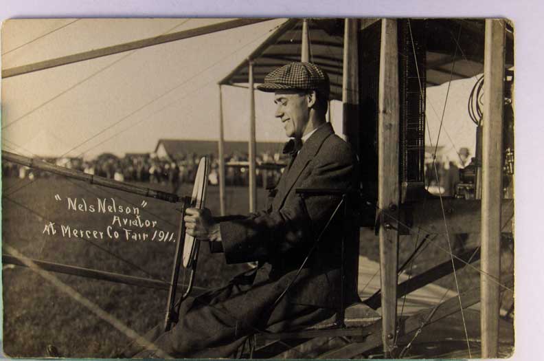 Lot #1348. View Larger | Rotate Aviator Nels Nelson, Real Photo w/ AZO P.C. back, “Mercer Co. Fair 1911” m cor wear F-VF