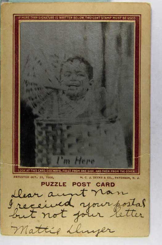 Lot #317. View Larger | Rotate Novelty Lenticular “Puzzle Post Card”, cpr. Deeks & Co., Used 1908 UB crs & pwof F