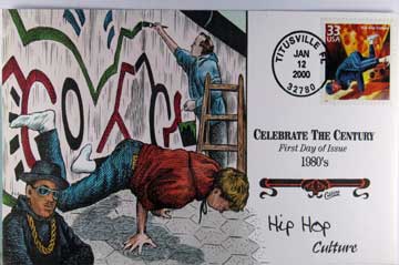 Lot #332. View Larger | Rotate Hand-Painted First Day Cover by Collins, “Hip Hop Culture”, 2000 VF