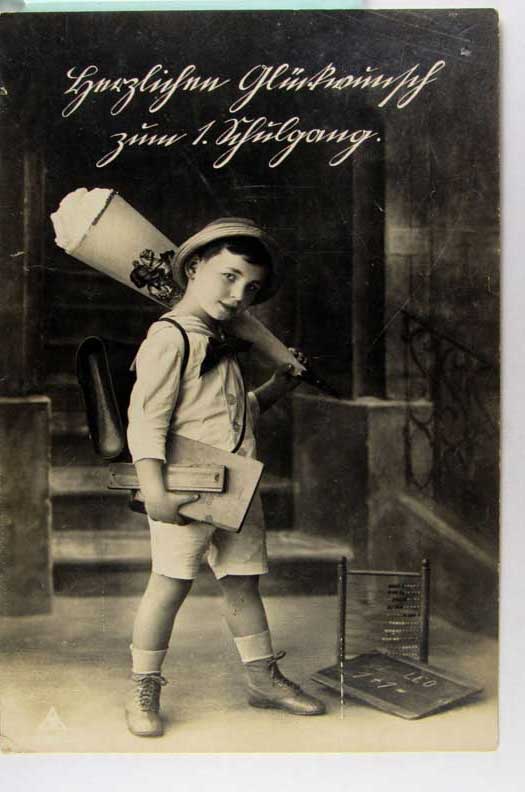Lot #373. View Larger | Rotate Boy w/ First Day of School Cone, Real Photo w/ German P.C. back VF