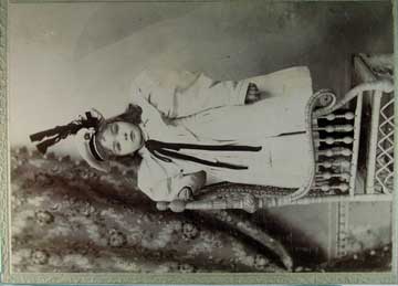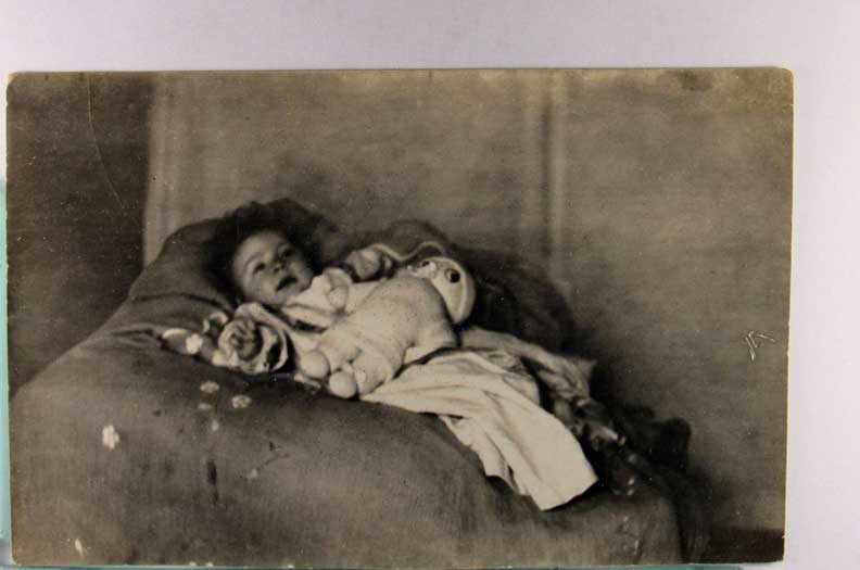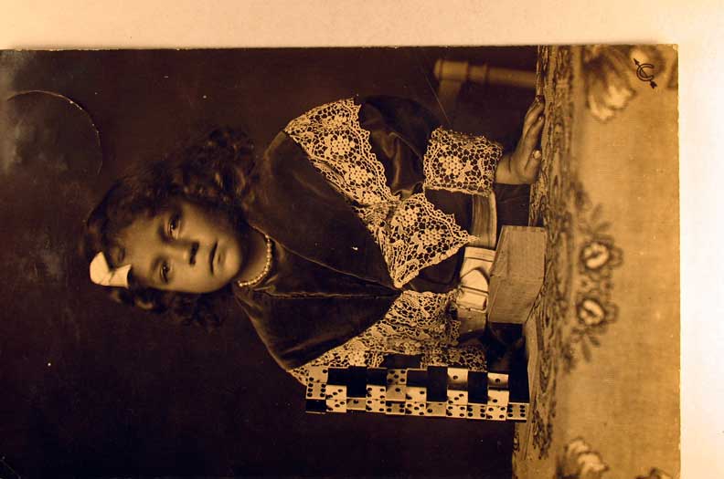 Lot #356. View Larger | Rotate B&W photo, Little Girl w/ Dominoes, used in England 1906 DB m cor cr F