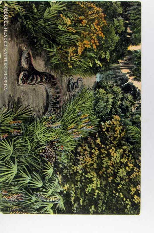 Lot #425. View Larger | Rotate Two-Headed Snake in Florida, Tinted Printed Photo DB m cor wear F-VF