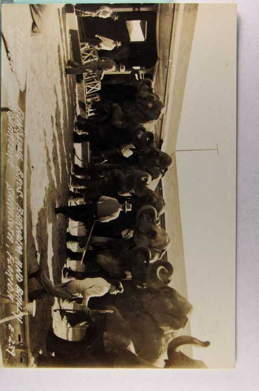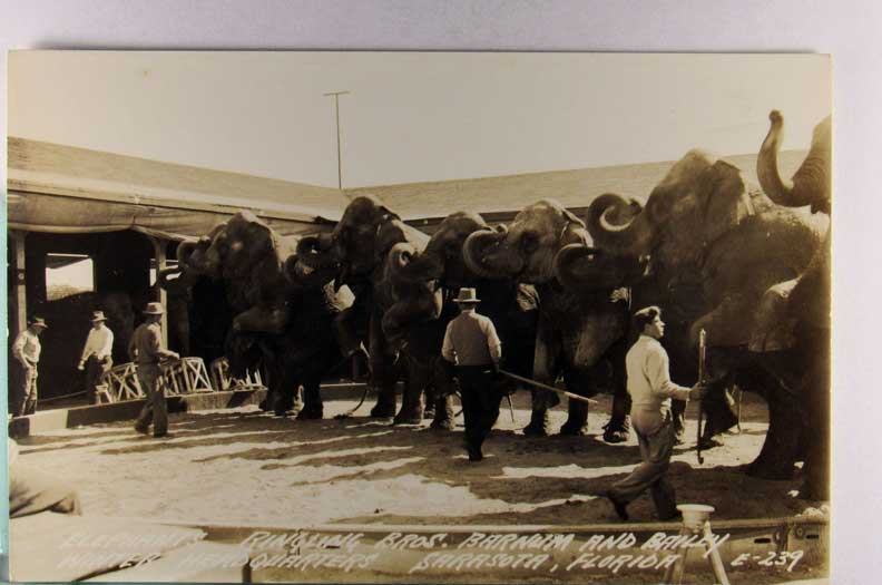 Lot #405. View Larger | Rotate Elephants at Ringling Bros. Barnum & Bailey, Sarasota, Florida, Real Photo w/ EKC P.C. back VF