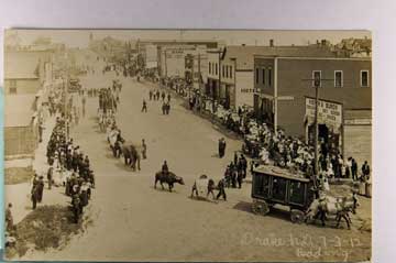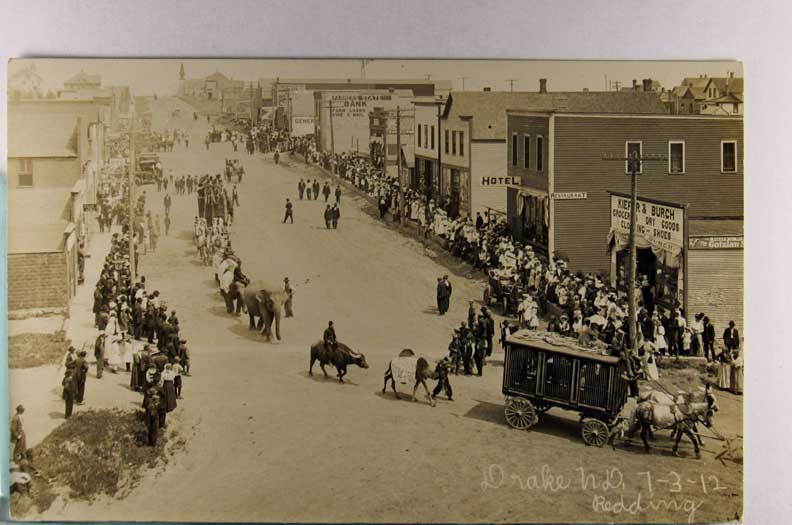 Lot #409. View Larger | Rotate Circus Parade w/ Elephant, Etc., Drake, North Dakota, Real Photo w/ AZO P.C. back VF