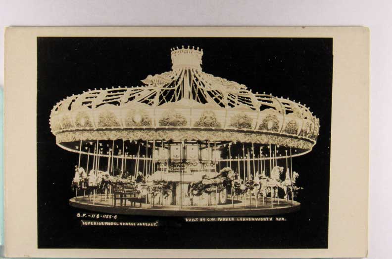 Lot #403. View Larger | Rotate Adv. Merry-Go-Round, “C. W. Parker, Leavenworth, Kan. - Superior Model 4 Horse Abreast”, Real Photo VF