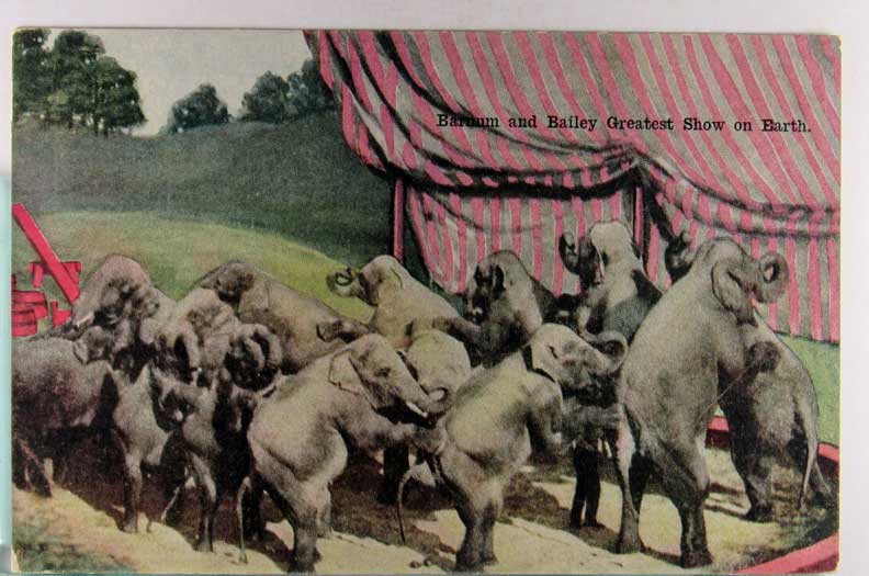 Lot #397. View Larger | Rotate Adv. Barnum & Bailey, Tinted Printed Photo, “Performing Elephants”, Dated 1908 DB Near VF