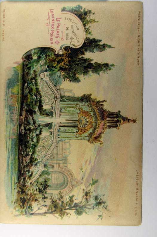 Lot #367. View Larger | Rotate 1900 Paris Expo., Hold To The Light, Transparency, Meteor #680, Le Palais Lumineux Ponsin” UB cor cr Near F-VF