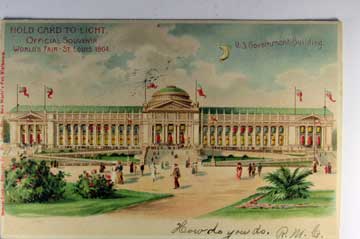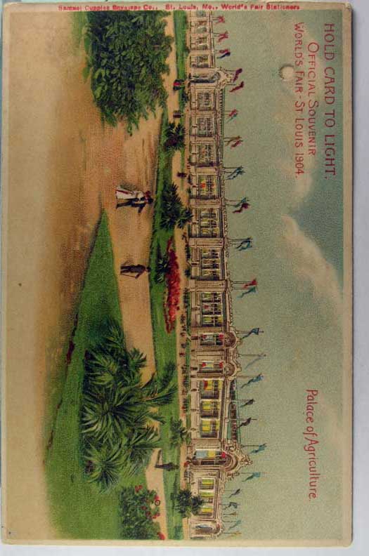 Lot #372. View Larger | Rotate 1904 St. Louis Expo., Hold To The Light, Die Cut, Palace of Agriculture, very nice UB VF