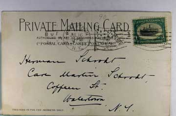 Lot #457. View Larger | Rotate 1904 St. Louis Expo., Farran Zerbe Wooden Gold Dollar Postcard, used w/ 1 cent Expo. Stamp UB VF