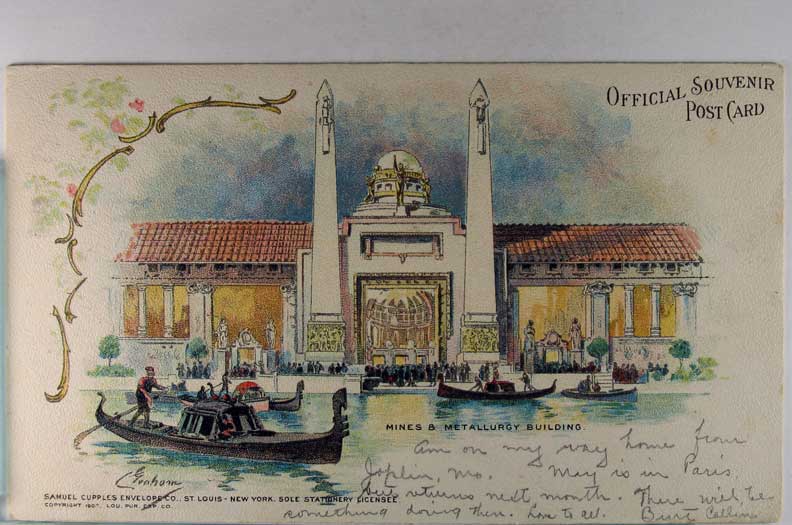 Lot #376. View Larger | Rotate 1904 St. Louis Expo., “Mines & Metallurgy Building”, Cupples Pub. UB p wof & cor cr Near F-VF