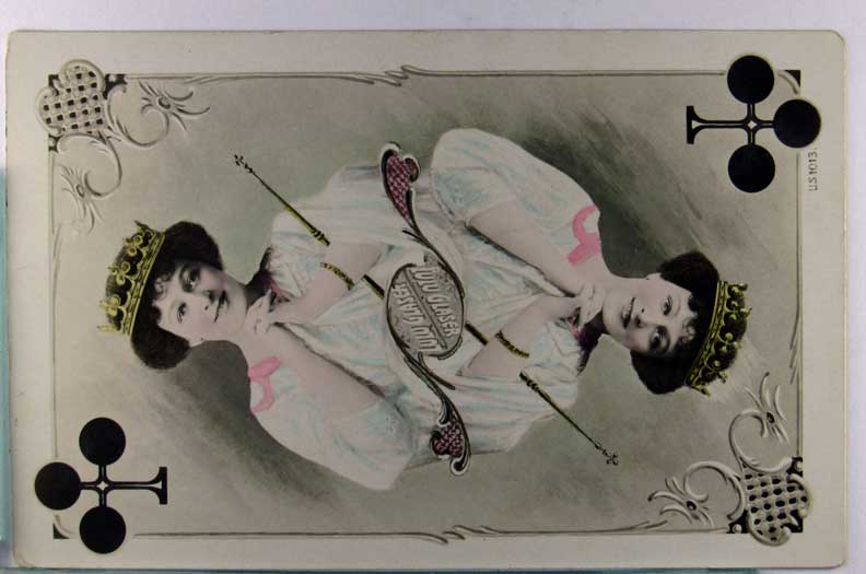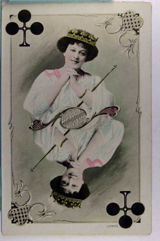 Lot #441. View Larger | Rotate Lulu Glaser, Playing Card Related, Tinted Real Photo Montage, Used 1909 UB VF