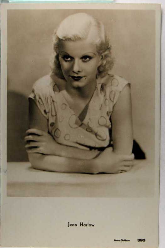 Lot #513. View Larger | Rotate Jean Harlow, Real Photo, Metro Goldwyn Mayer Pub., #393 m cor wear VF