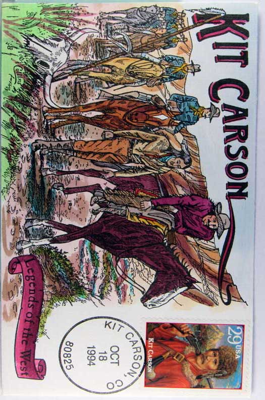 Lot #521. View Larger | Rotate Hand-Painted First Day Cover by Collins, Kit Carson, “Legends of the West”, 1994 VF