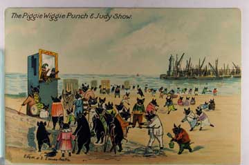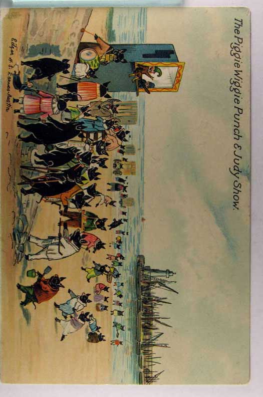 Lot #570. View Larger | Rotate Fantasy Pigs, R. Tuck Piggie Wiggie Ser. No. 6016, “The Piggie Wiggie Punch & Judy Show”, Used 1906 DB cor cr F-VF