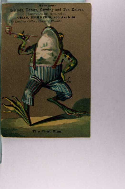 Lot #568. View Larger | Rotate Fantasy Frog, Trade Card Adv. Cutlery House Near VF