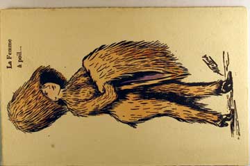 Lot #573. View Larger | Rotate French pub. Woman w/ Fur, Art. Sig. Molynk, “La Femme a Poil”, unusual DB F-VF