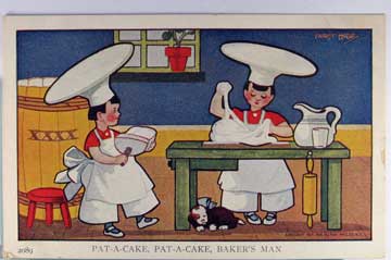 Lot #451. View Larger | Rotate Nursery Rhyme Ser., “Pat-A-Cake Bakers Man”, Art. Sig. Hutaf DB m cor cr & album marks F-VF