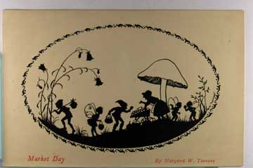 Lot #546. View Larger | Rotate Fantasy Fairies Silhouettes, Art. Sig. Margaret Tarrant, “Market Day” VF