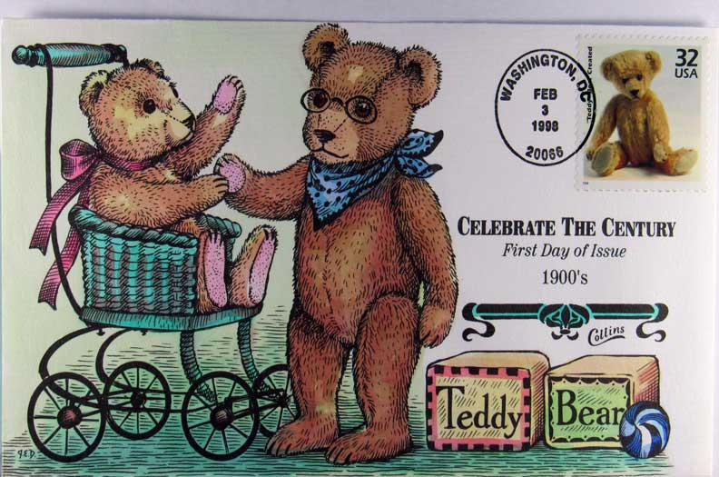 Lot #563. View Larger | Rotate Hand-Painted First Day Cover by Collins, Fantasy Teddy Bears, 1998 VF