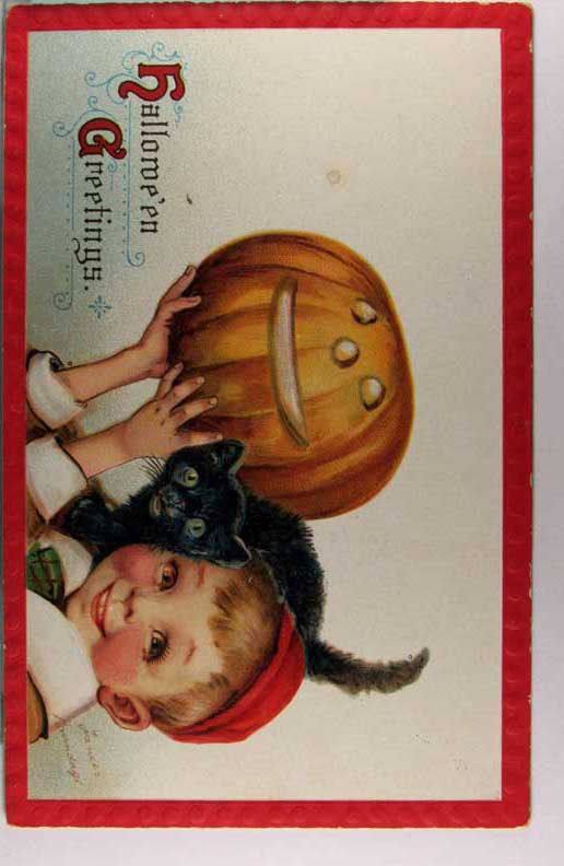 Lot #589. View Larger | Rotate Halloween, Int. Art Pub. Co., Art by Wall, Used 1908 DB emb m wear & m face soil F-VF