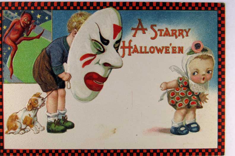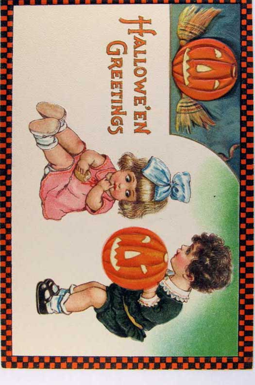 Lot #533. View Larger | Rotate Halloween, Winsch Pub., Art by Frexias, Rare w/ Checkered Border DB emb m st VF