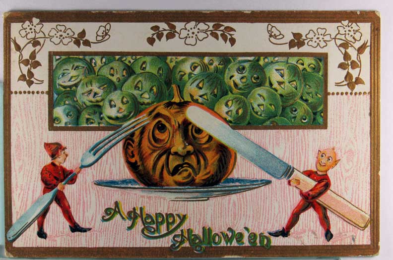 Lot #608. View Larger | Rotate Halloween, Int. Art Pub., Art by Ellen Clapsaddle, w/ Fantasy Vegetable People DB emb Near VF