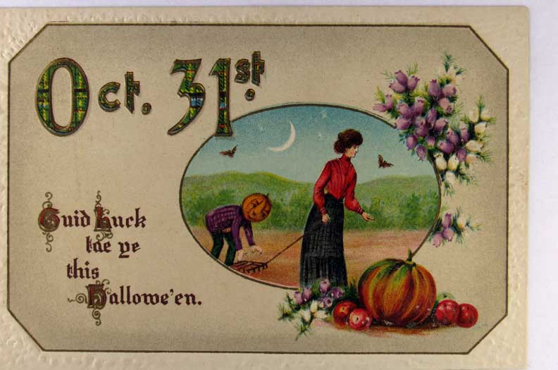 Lot #639. View Larger | Rotate Halloween Related w/ Jack-o-lantern, #1925 DB emb VF