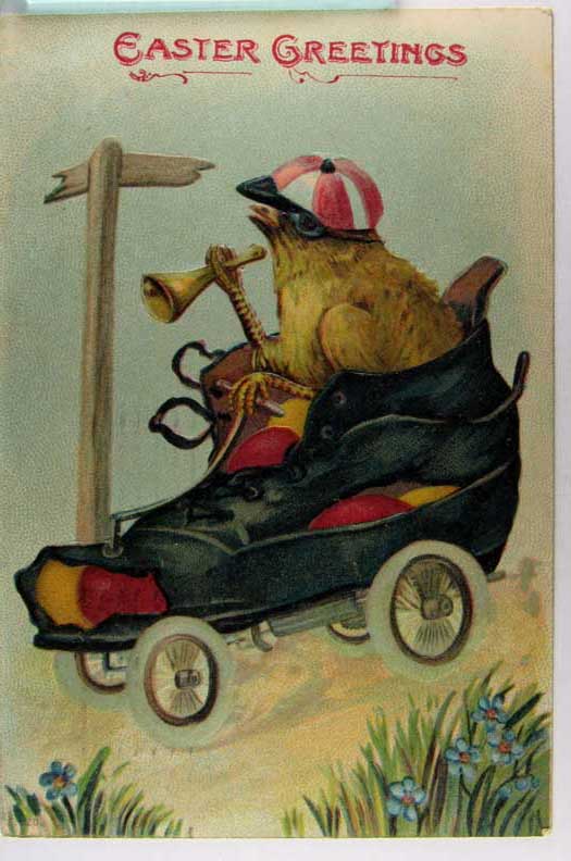 Lot #733. View Larger | Rotate Easter w/ Fantasy Chick in Roller Skate, Used 1910 DB emb m cor wear F-VF